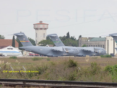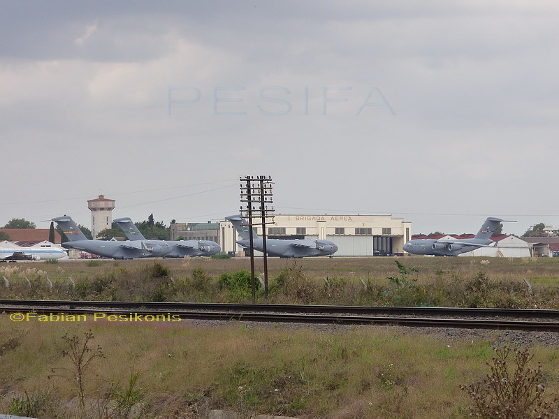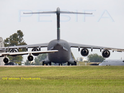 Boeing C-17 Globemaster III, observados en la Base Aerea de El Palomar. En esta oportunidad solo cuatro unidades ( de las 23) que vinieron con motivo de la visita del Presidente de los Estados Unidos, Barak Obama. Fotografias del dia 24Mar16.
